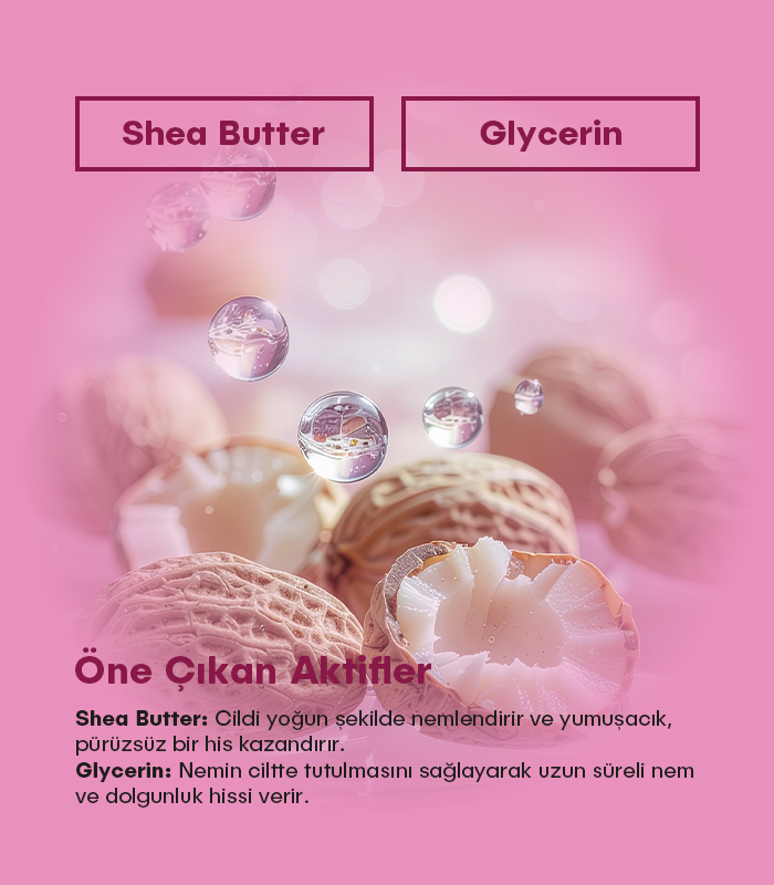 Yoğun Nemlendirme: İçeriğindeki Shea Butter, Argan ve Ceviz Yağı ile cildi derinlemesine nemlendirir, kuruluk hissini azaltır.