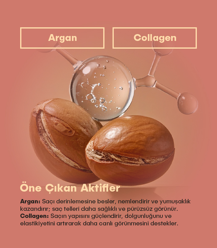 Yoğun Besleyici Formül: İçeriğindeki Argan Yağı, Shea Butter ve Hindistancevizi Yağı ile saç tellerini derinlemesine besler, nemlendirir ve yumuşaklık kazandırır.